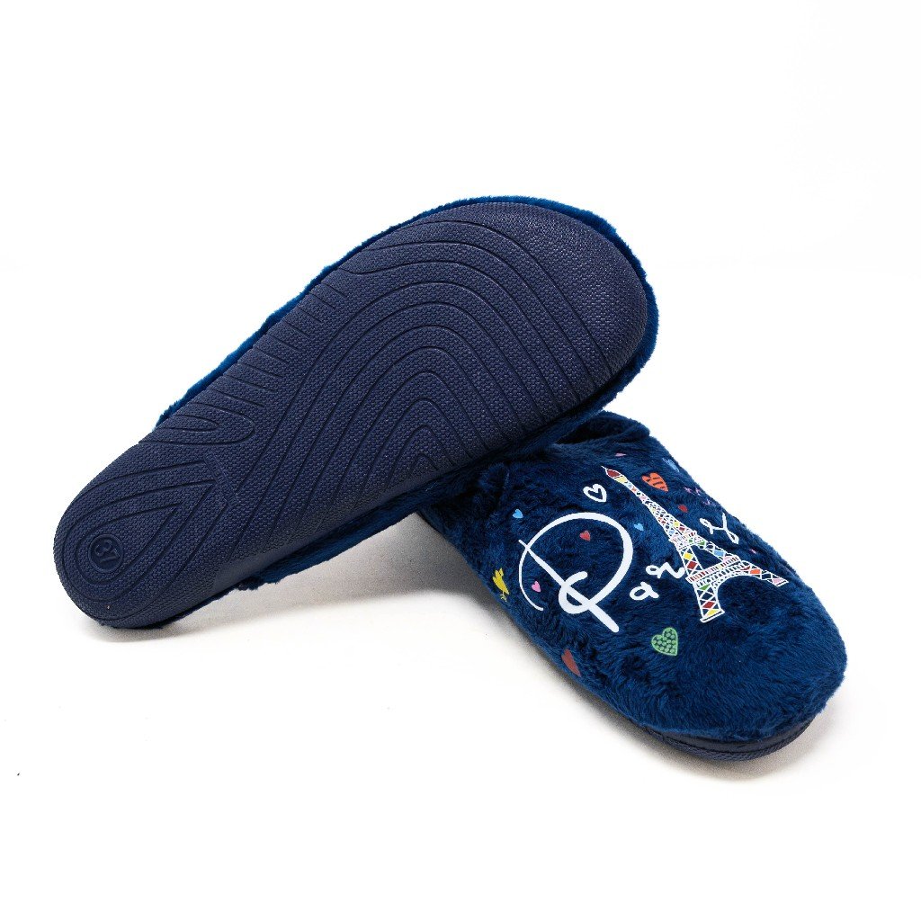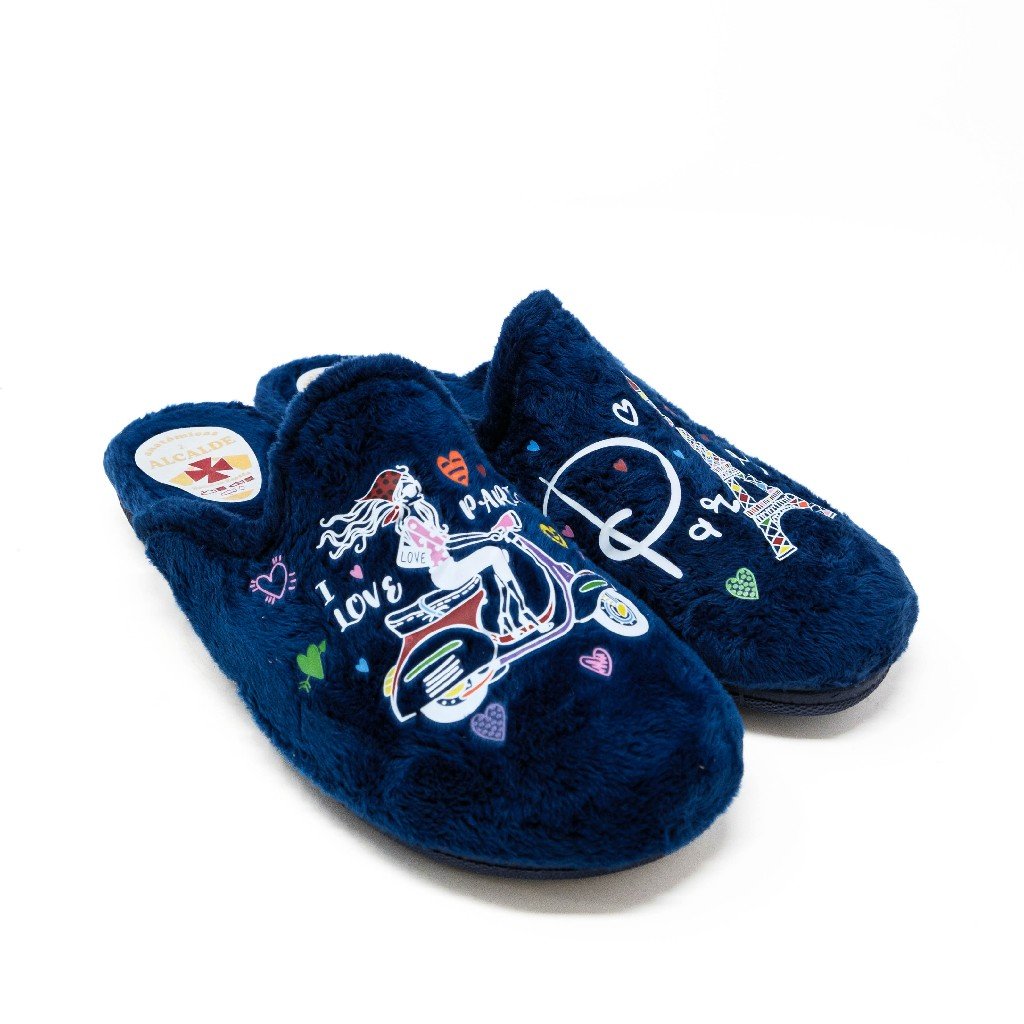 Alcalde- Zapatillas de Casa Mujer Invierno Abiertas- Azul Marino con Bordado de París- Fabricado en España