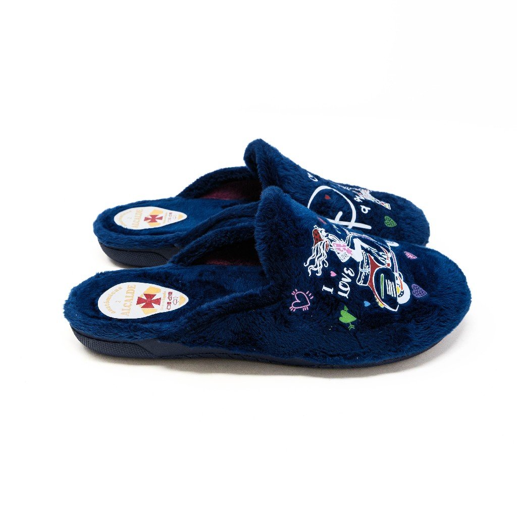 Alcalde- Zapatillas de Casa Mujer Invierno Abiertas- Azul Marino con B