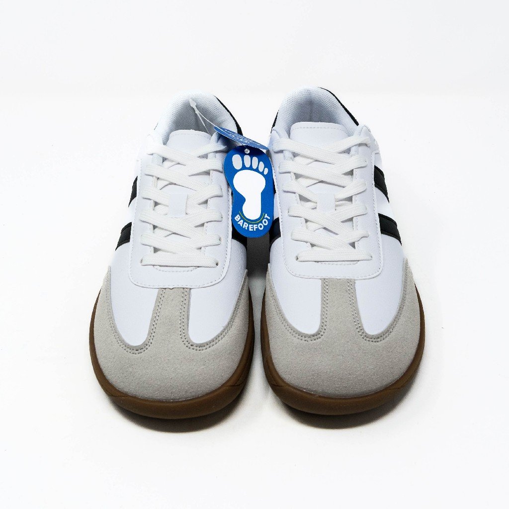 Demax- Zapatillas Deportivas de Hombre Barefoot- Calzado Respetuoso- Blanco con Detalles en Negro- Zapatillas con Cordon
