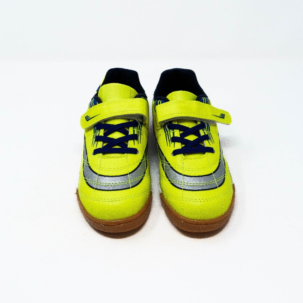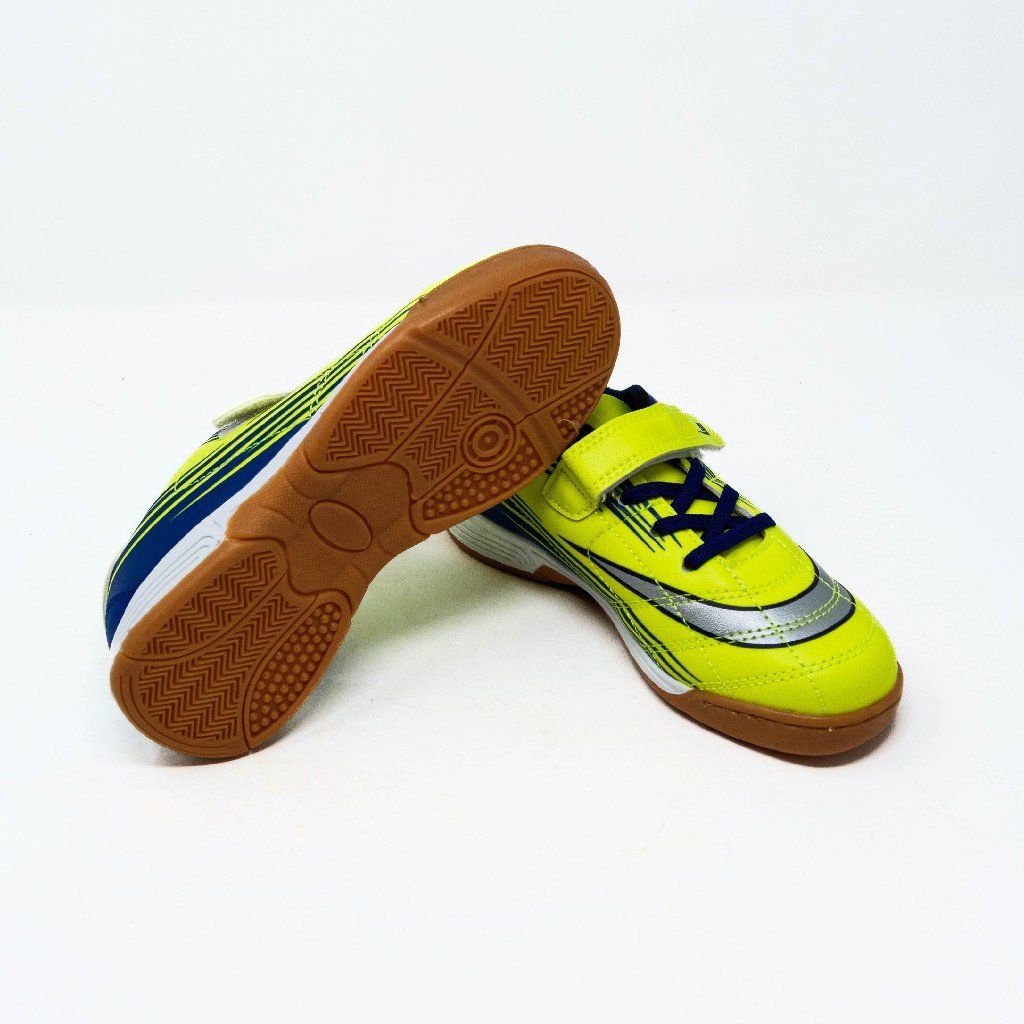 Demax- Zapatillas Deportivas de Niño- Zapatillas de Fútbol Sala- Amarillo Fosforito con Detalles en Azul y Plateado- Zap