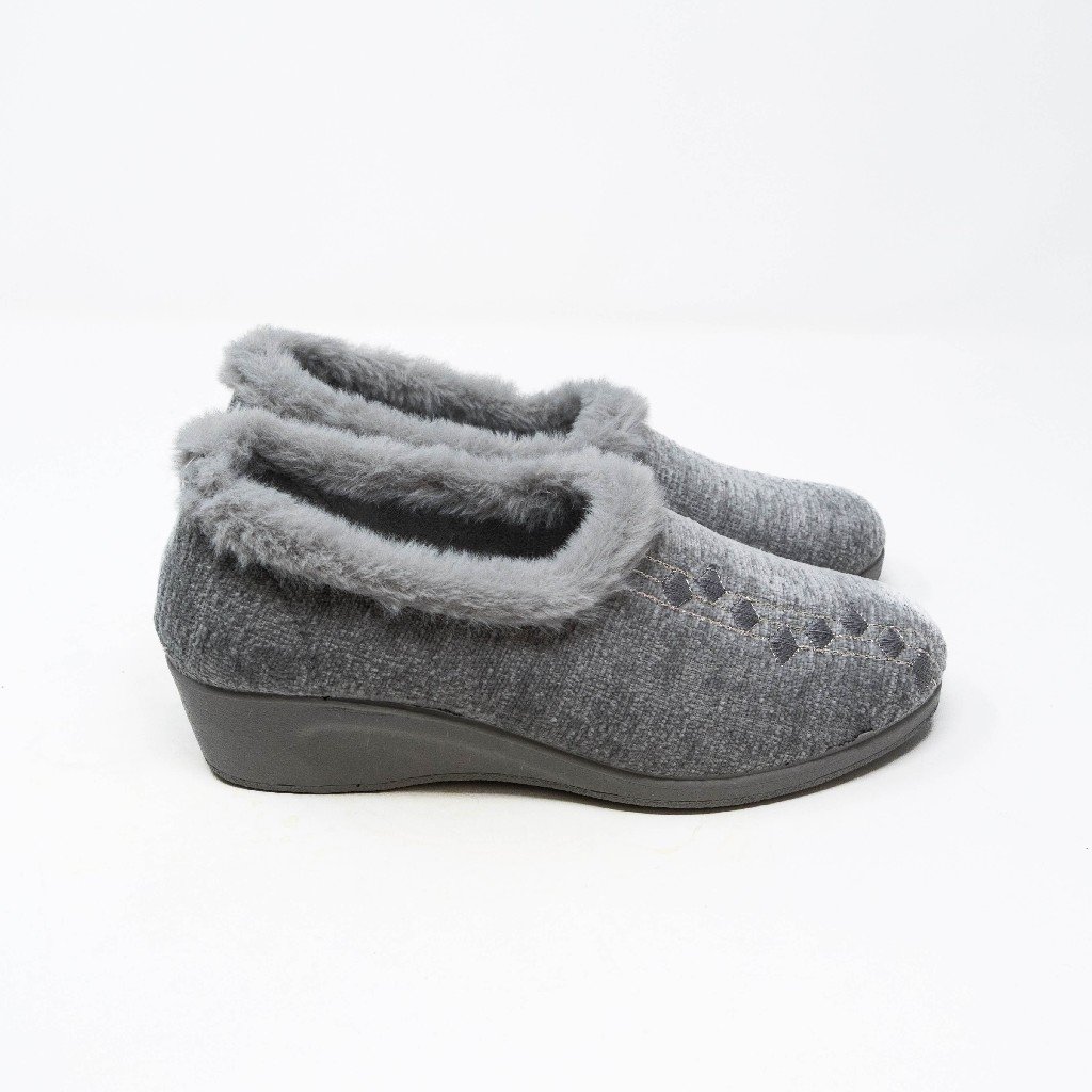 Natalia Gil- Zapatillas de Casa Mujer Invierno Cerradas- Gris con Forr