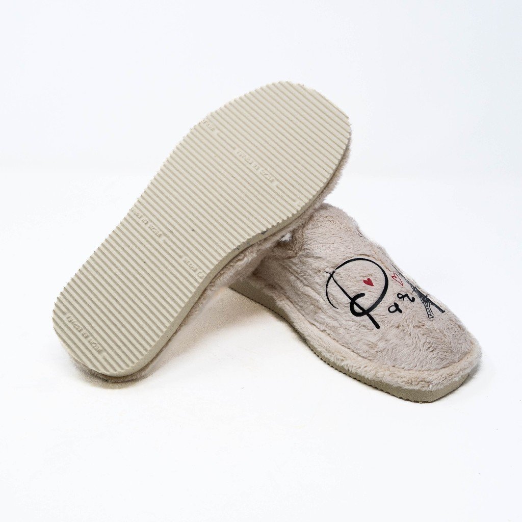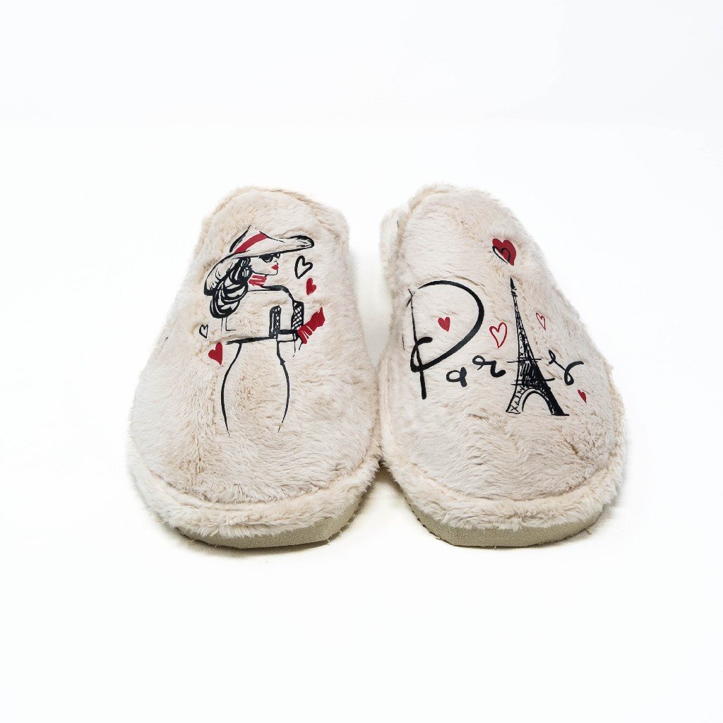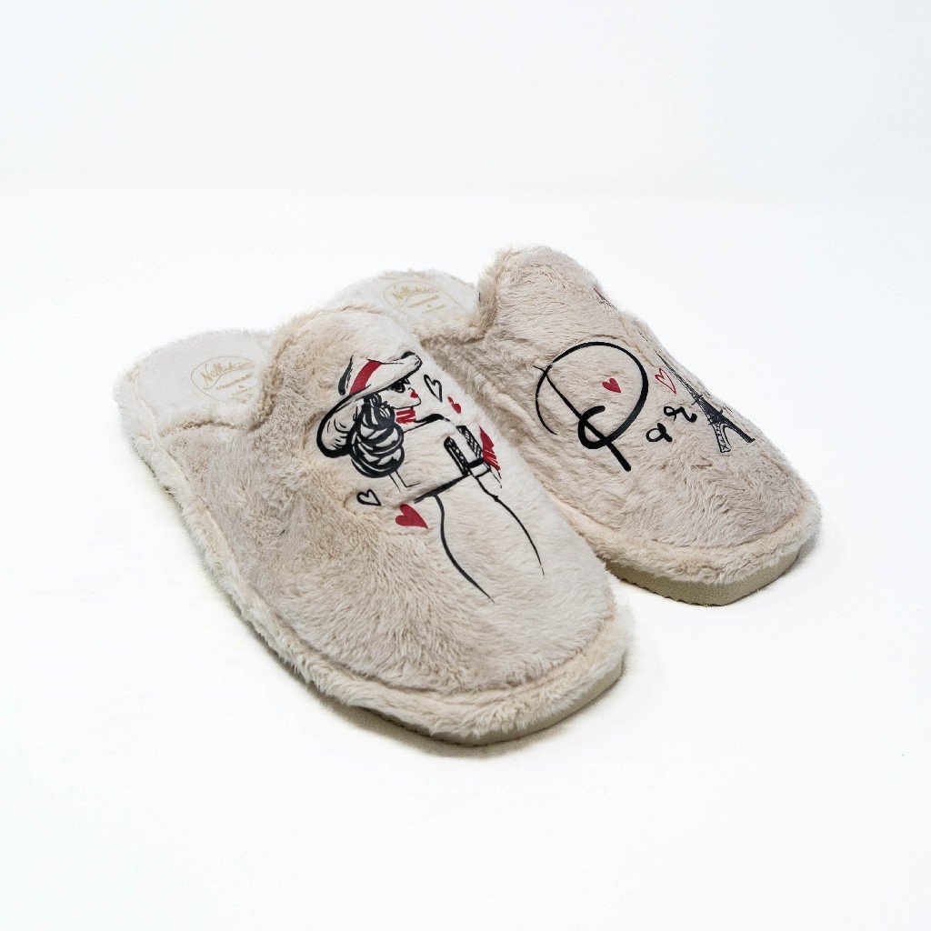 Nellakis- Zapatillas de Casa Mujer Invierno Abiertas- Beige con Bordado de París- Ultraligeras- Fabricado en España