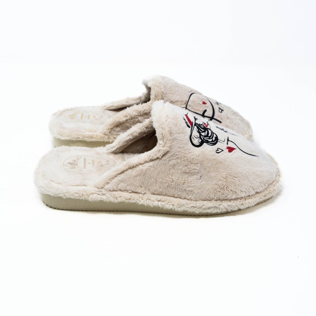 Nellakis- Zapatillas de Casa Mujer Invierno Abiertas- Beige con Bordad