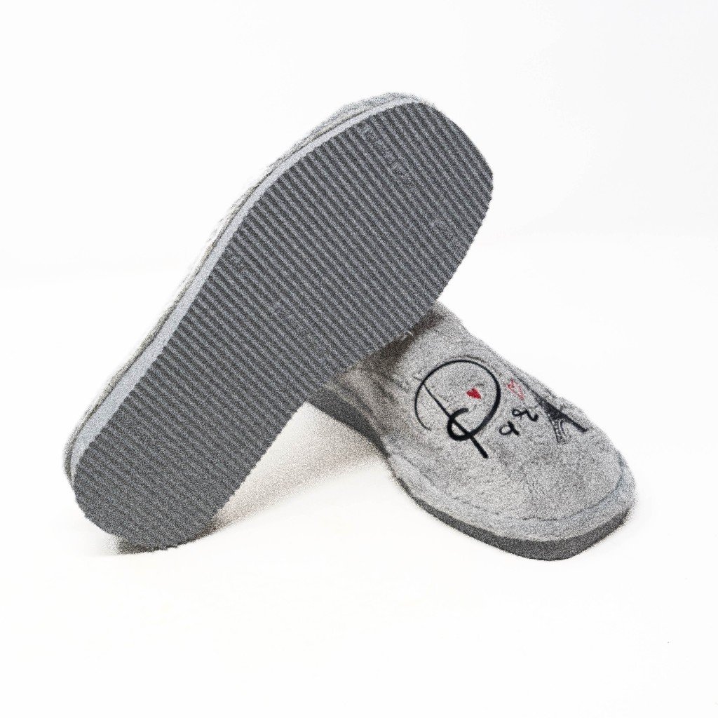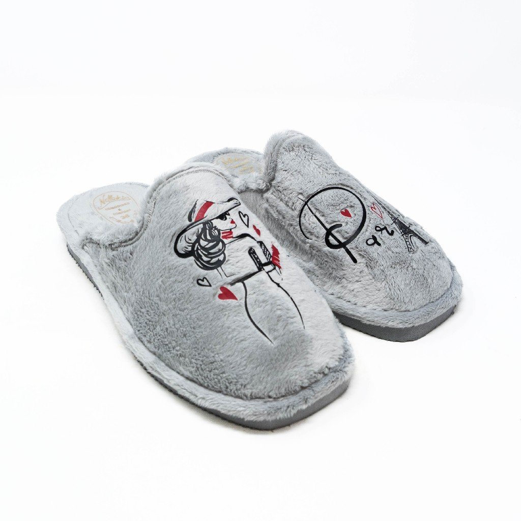 Nellakis- Zapatillas de Casa Mujer Invierno Abiertas- Gris con Bordado de París- Ultraligeras- Fabricado en España