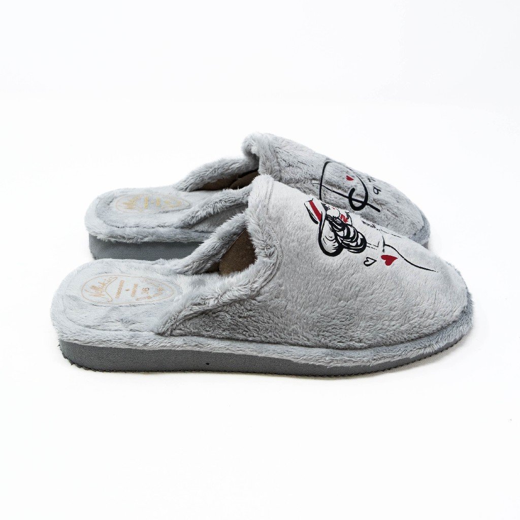 Nellakis- Zapatillas de Casa Mujer Invierno Abiertas- Gris con Bordado