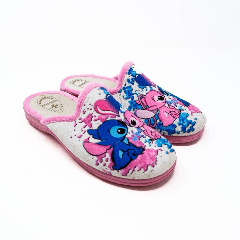 Ortopédica- Zapatillas de Casa Mujer Invierno Abiertas- Rosa con Bordado de Lilo & Stich- Fabricado en España