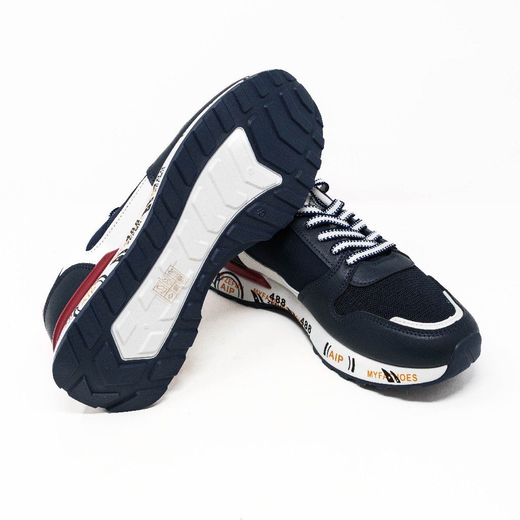 Zapatillas Deportivas de Hombre- Azul Marino con Detalles en Rojo- Zapatillas para Vestir- Zapatillas Casuales